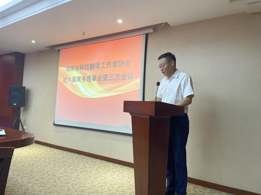 2022年8月8日上午,湖南省科技翻译工作者协会(以下简称湘科译协)第六届常务理事会第三次会议在437必赢会员中心国际学术交流中心会议厅召开。
