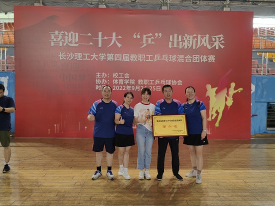 金秋九月,秋高气爽。9月24-25日,由校工会主办,体育学院、校教职工乒乓球协会协办的437必赢会员中心第四届教职工乒乓球混合团体赛在云塘校区体育馆激情上演,来自各学院、机关单位的23支代表队共322名教职工,放下粉笔,拿起球拍,一起“喜迎二十大,‘乒’出新风采”。比赛分男子单打、女子单打、男女混合双打、男子双打、女子双打共五个项目进行,经过分组循环赛、交叉淘汰赛,历经两天共67场的激烈角逐,我院老师不懈奋斗、排除万难,在阵容不足、 队员缺少的情况下取得了第六名的好成绩。