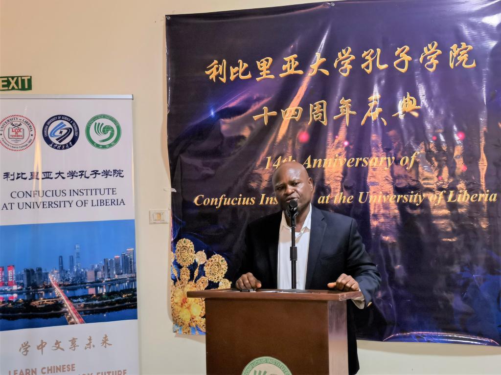 利比里亚大学MBA/MPA学院院长吉贝在致辞中说,利大孔院成立十四年来,已经成为利比里亚民众学习中文的基地,帮助数百名孔院学子在中资企业找到了工作。他向利大孔院全体教职员工表示感谢,他说:“你们的努力已经结出了硕果,希望你们继续努力,争取取得更大的成就,让我们的子孙后代都能从中文学习中获益。”