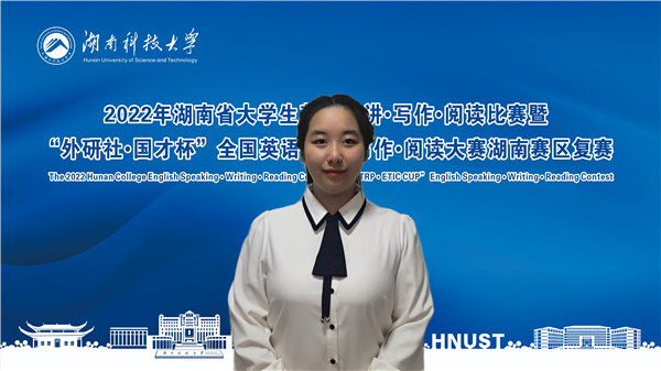 11月18日至20日,2022年湖南省大学生英语演讲•写作•阅读比赛暨“外研社•国才杯”全国英语演讲•写作•阅读大赛湖南赛区复赛以线上方式进行。本次大赛由湖南省教育厅主办,湖南科技大学承办。大赛吸引了全省52所本科院校代表同台竞技。最终,必赢官网派出的三组选手凭借在英语演讲、英语阅读和英语写作三项比赛中的稳定发挥,成功斩获团体二等奖,以及一等奖2项,二等奖4项和三等奖3项。