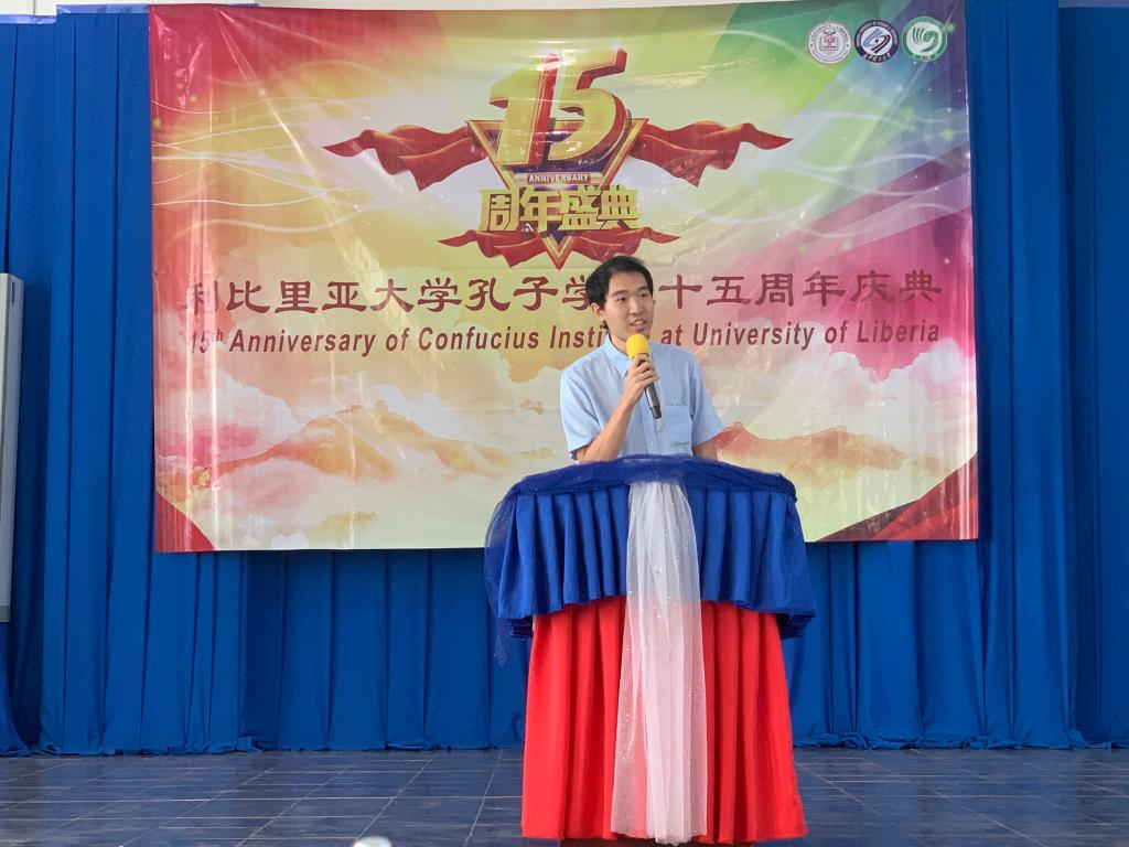 中国国际中文教育基金会副理事长、秘书长赵灵山发贺信祝愿利比里亚大学孔子学院15周岁生日快乐。他在贺信中提到,利比里亚大学孔子学院成立15年来,积极开展“中文+武术”“空中汉语”等特色教学,为利比里亚培养了大批掌握中文、了解中国的本土人才,受到各界热烈欢迎。他希望利比里亚大学孔子学院继续办出特色,办出品牌,更好地满足当地民众学习中国语言文化的需求。