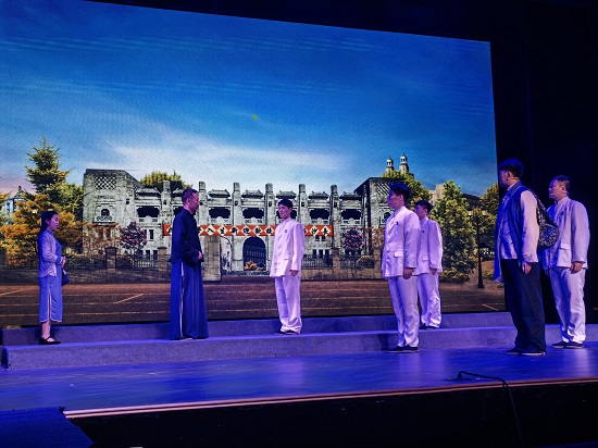 下午在田汉艺术中心小剧场观看红色教育党建剧《田汉眼中的中国》,重温了田汉离家求学、日本留学、回国后为无产阶级事业奋斗以及在牢狱中写下国歌的场景。该剧的定名意在从田汉的视角,告诉今天的人们,在新中国成立前的百年历史中中国人民特别是在中国共产党的领导下,表现出的不屈不挠的民族精神和冒着敌人的炮火前进的民族气节。演员们的精彩演出,赢得大家的阵阵掌声。