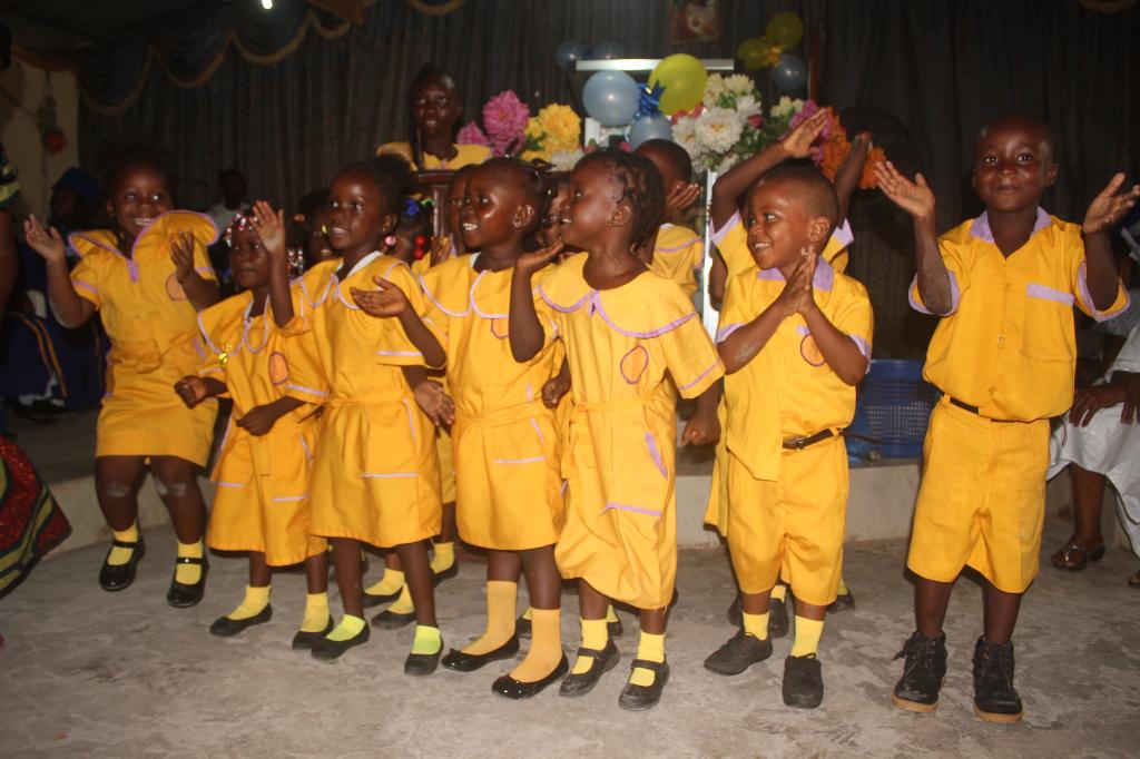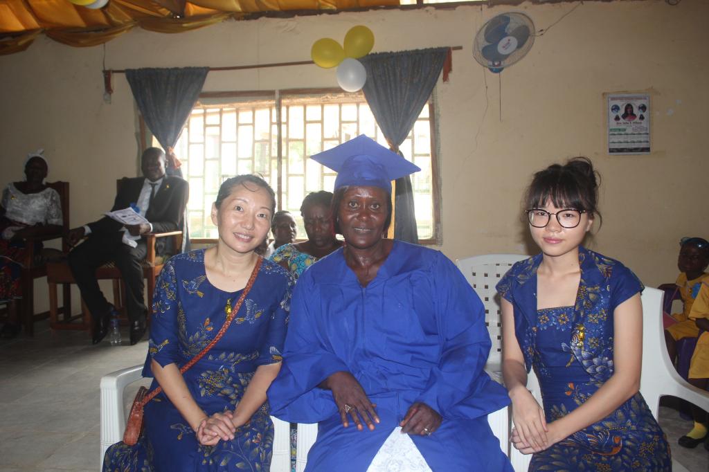 毕业典礼气氛热烈,老师们和小学生们载歌载舞,表达内心的欢乐。数名学生代表上台发言,背诵他们学到的知识,他们的表现赢得了老师们激动的拥抱以及家长们的热烈掌声。为表示对中国老师的感激之情,学生们把象征荣誉的花朵和糖果用针别在了两位老师的衣服上。
