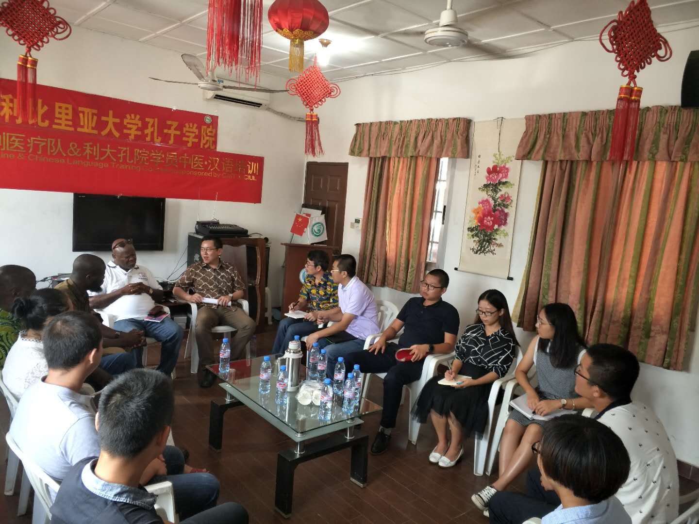 当地时间10月21日上午10点整,利比里亚大学孔子学院在教学活动中心召开了教学扩大工作会议。中国驻利大使馆政治处张磊主任、利比里亚大学副校长吉贝·吉贝(Geegbae A Geegbae)、利大全体中外方教师及部分驻利中资企业代表等参加了会议。此次会议主要围绕教师如何增强教学效果、提高教学水平、提升教学质量三个方面展开。