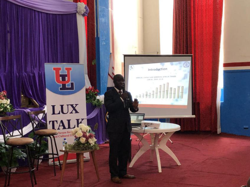 当地时间7月18日,“中国在撒哈拉以南非洲的投资模式是否以自然资源需求为驱动”专题讲座在利比里亚大学老校区举行。利比里亚大学副教授李可(J. Alexander Neutah)担任主讲人。利比里亚大学副校长威廉·艾伦、吉贝·吉贝,中国驻利大使馆代表,利比里亚大学孔子学院师生代表100余人参加了讲座。