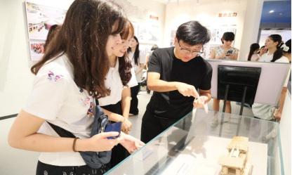 营员们首站走进学校标志性场馆——三全育人教育基地。在1900平方米的展陈空间中,“国之大者”“材之茂者”“师之贤者”“行之实者”四大主题篇章生动诠释了学校69年办学底蕴。港珠澳大桥微缩模型、见证国家重大工程的疏浚船绞刀头、学生精细复刻的湖湘红色建筑群,让黑山青年直观感受到长沙理工在交通、电力、水利等领域的突出贡献与“每一粒砂都是国土”的家国情怀。离馆前,众人手持校园明信片进行特色集邮盖章。营员们表示“这次体验真的很棒,我尤其喜欢其中的建筑部分。”