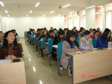 讲座中杨教授首先就以上研究做了一个简单的背景介绍,他指出过去的学术研究中对英语中的非限定结构的研究不足,许多有名的西方语言学家,如Quirk et al, Hudson, Chafe, Danielewicz, Beaman, Greenbaum, Thomson, Martinet and Johansson都有涉及这方面的研究,但是都没有深入到非限定小句的研究中去。杨教授告诉我们,这项研究的主要目的是研究非限定小句的特征。比如,词汇密度、非限定词密度、非限定程度的分布等等。同时,他还回顾了传统研究方式以及系统功能研究方式的相关理论知识。接着,杨教授详细讲解了这项研究的全过程,如提出假设、被试、选用材料、研究工具、数据处理、结果分析讨论、以及他本人提出的非限定小句划分的四条标准等等。讲座最后杨教授回答了同学们提出的问题,并进行了交流。现场气氛热烈,同学们都表示此次讲座受益匪浅。