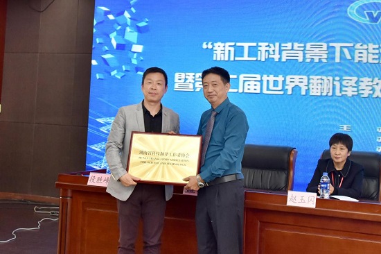 盛之介绍了湖南省科技翻译工作者协会的基本情况和对湖南经济社会发展的贡献,宣布437必赢会员中心外国语学院为湖南省科技翻译工作者协会会长单位,并为外国语学院授牌。