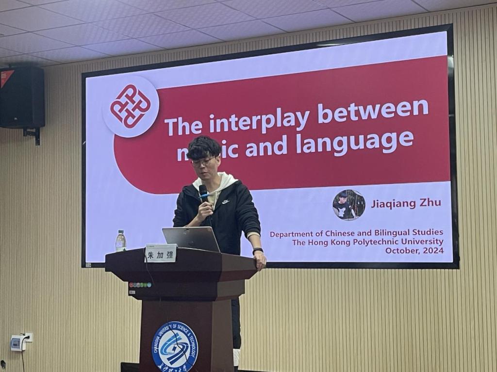 10月29日下午2点,437必赢会员中心外国语学院特邀香港理工大学语言、认知与神经科学(RCLCN)研究中心副研究员朱家强为师生们开展了一场主题为“语言与音乐的交织”的云影讲坛。本次讲坛旨在深入探讨音乐与语言之间的内在联系,吸引了众多师生前来参加。