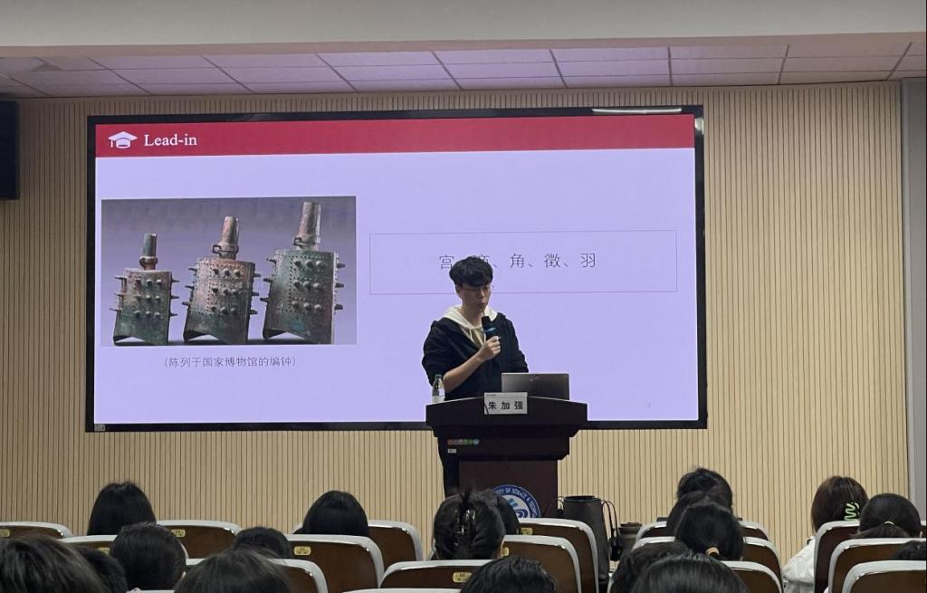 朱家强首先以音乐文物和与音乐有关的古代文献记载为引入,通过四个关键问题,逐步引导师生们进入音乐与语言交织的奇妙世界。接着,他通过解释科学研究的定义,强调了科学研究并非遥不可及,而是与我们的日常生活息息相关。为了更直观地展示音乐与语言的奥秘关系,朱家强列举了多个与生活密切相关的例子。在讲解音乐的节奏时,朱家强通过具体的图片生动形象地展示了音符的螺旋式排列,并阐述了音调能够反映音高参数这一事实。他比较了音乐的音符和语言的音调在声学上的相似性,发现了语言和音乐共同影响了人们的感知这一现象。为了进一步论证音乐与语言的紧密联系,朱加强向师生们详细介绍了歌剧理论,并指出,当满足一定条件时,音乐会促进语言的发展。此外,他还介绍了大脑皮层的五大功能,进一步阐释了音乐与语言在大脑中的相互作用。