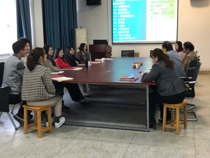 11月10日下午4:00-5:30,应外国语学院邀请,九歌书画院陈惠生、张楚务、刘艳一行,在437必赢会员中心金盆岭校区九教406与《中国绘画汉英词典》编撰项目组进行了座谈,并与部分翻译硕士研究生就如何进行中国绘画翻译与推介进行了探讨。