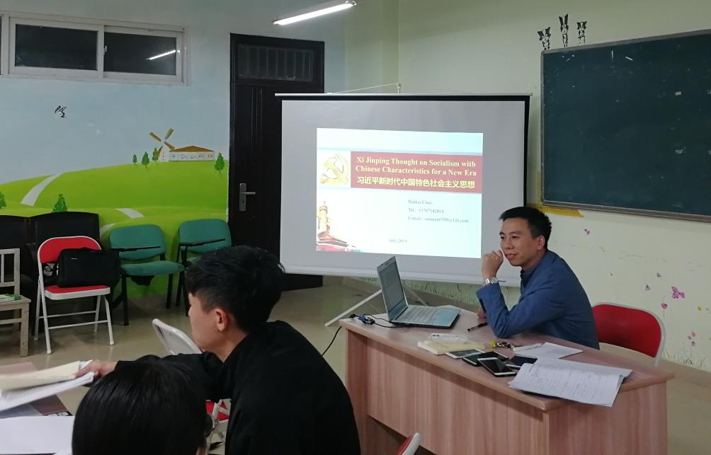 2019年10月18日7点,我院本科生党支部在文科楼A503举行了关于外国语学院打出组合拳,推进学生党员“不忘初心,牢记使命”的主题教育。外国语学院党委副书记陈仁凯、党建辅导员钱通华出席会议。