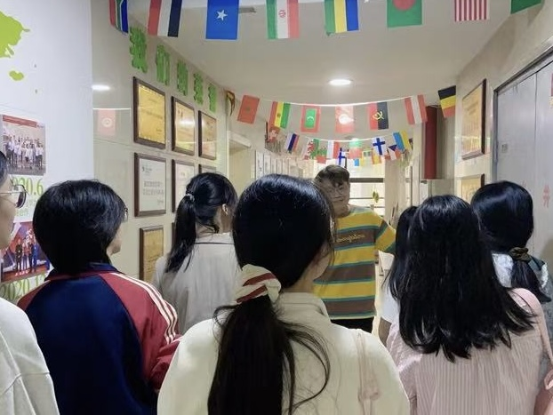 爱秀教育校长林惠向师生详细介绍了企业发展历程与教育生态布局,市场总监刘唐洪重点解读了大学生英语板块的创新成果。参访过程中,师生实地观摩了沉浸式语言课堂,感受“纯英文浸泡环境”的教学实践。