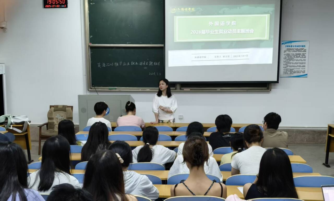 为帮助2026届毕业生明晰就业方向,增强就业竞争力,近日,外国语学院组织各班开展就业动员主题班会,全体毕业生参与其中。