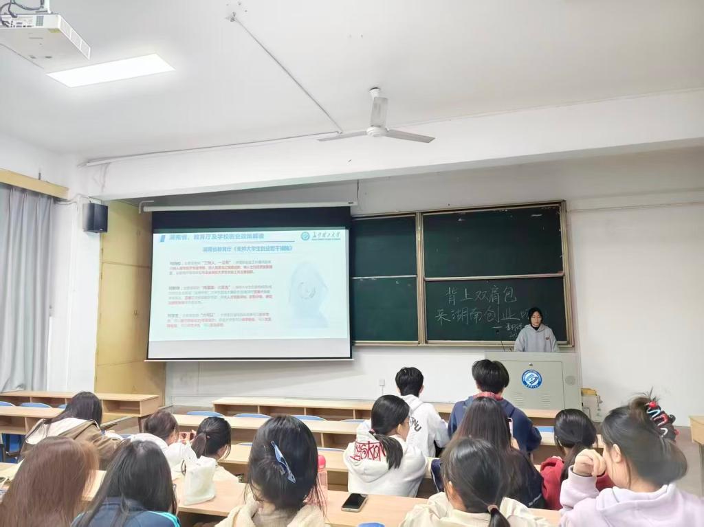 为激发大学生创新创业热情,培育勇于开拓的创业精神,近日,外国语学院统筹组织全院各班级开展“背上双肩包,来湖南创业吧!”主题班会,通过精准政策解读与资源优势介绍,为学子创新创业注入强劲动力。