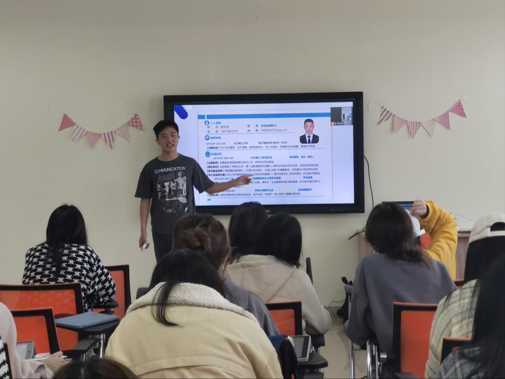 此次交流会由求职经验分享讲座、情景模拟游戏和分享交流三部分组成。首先,主持人向同学们介绍了本次给大家分享自己求职经验的嘉宾,他们分别是来自交通学院的龚晓斌学长以及物电学院的田文浩学长。两位学长就本期交流会的主题分别给同学们讲述了自己的求职经历以及心得,并根据现场同学们提出的就业问题作出了自己的回答。接着,主持人带领着大家进行了一场情景模拟游戏,旨在让同学们将理论运用到实际中来,同学们根据游戏规则进行讨论,积极参与。最后,学长跟同学们一起交流答疑,现场氛围融洽,同学们受益匪浅。