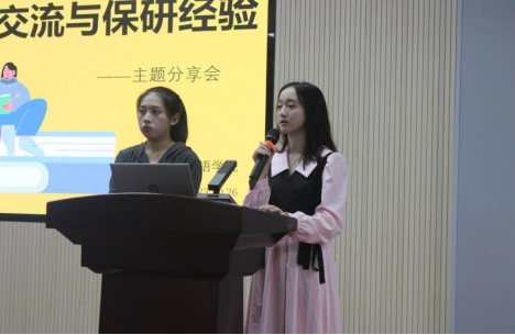已保研至西南交通大学王雯辉同学“多多尝试,抓住机会。但行好事,莫问前程。”为主题,分别从推免资格准备和获得推免资格两方面进行经验分享并提醒大家争取推免资格过程中要注意的一些事项,最后表达了对学弟学妹们的真挚祝福。已保研至外交学院的刘志洋同学在分享会上,讲述了大学期间为保研所做出的努力和保研夏令营的经历,特别强调了专业学习的重要性,同时在分享的最后给予大家“心想事成,梦想成真”的美好祝愿。