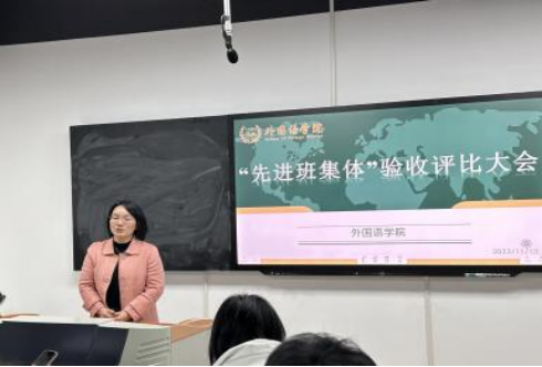 2023年11月15日晚,外国语学院于金盆岭校区3号教学楼611教室组织开展“先进班集体”验收评比活动,参会人员有党委副书记周芳老师、陈若晨老师、毛婕老师及各班长团支书,由院团委学生会办公室干事唐汇权主持会议。