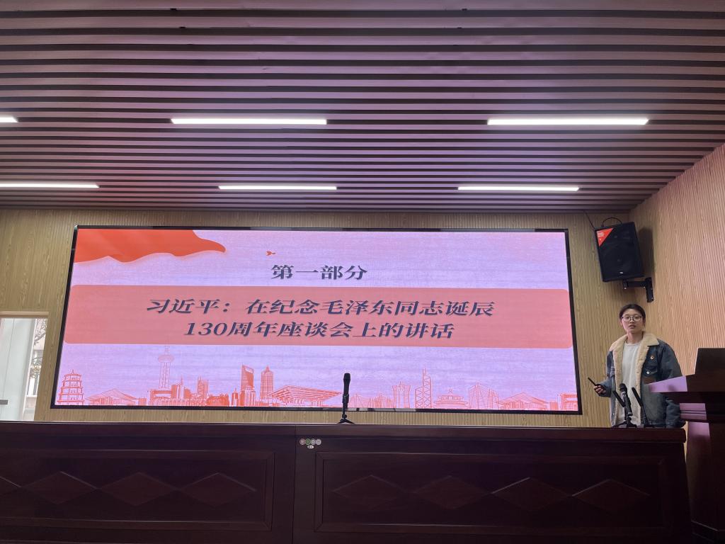 活动分为三个板块,主持人谭晨曦同志带领大家学习了习近平总书记纪念毛泽东同志诞辰130周年的讲话、关于巩固拓展主题教育成果的讲话,及2024年新年贺词。