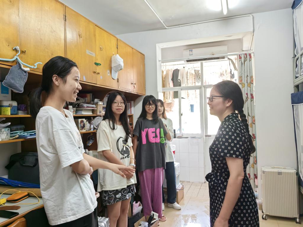 新学期伊始,为了深入了解学生住宿情况,加强宿舍管理,确保学生住宿安全与舒适,9月1上午,外国语学院党委书记文丽丽、院长段胜峰带领全体院领导深入学生宿舍走访,与学生们亲切交流,做细、做实、做好学生思想政治教育工作。