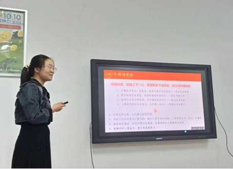 总结点评环节,毛婕老师指出各班班级展示总体良好,但班级特色不够明显,竞争力不强等问题,希望各班班长今后可以更多地向校优秀班集体学习,积极打造班级特色优势。