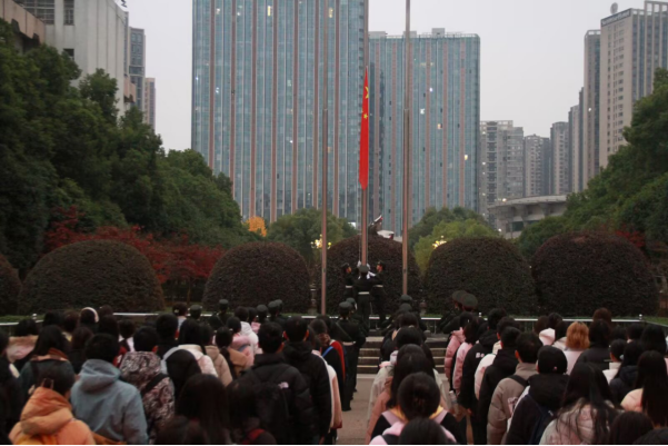 2024年12月9日早上7点,我院在金盆岭校区经管大楼前坪举行升旗仪式。学院党委副书记周芳,院团委书记郭恒,辅导员毛婕,全体团委学生会干部以及24级全体学生参加。