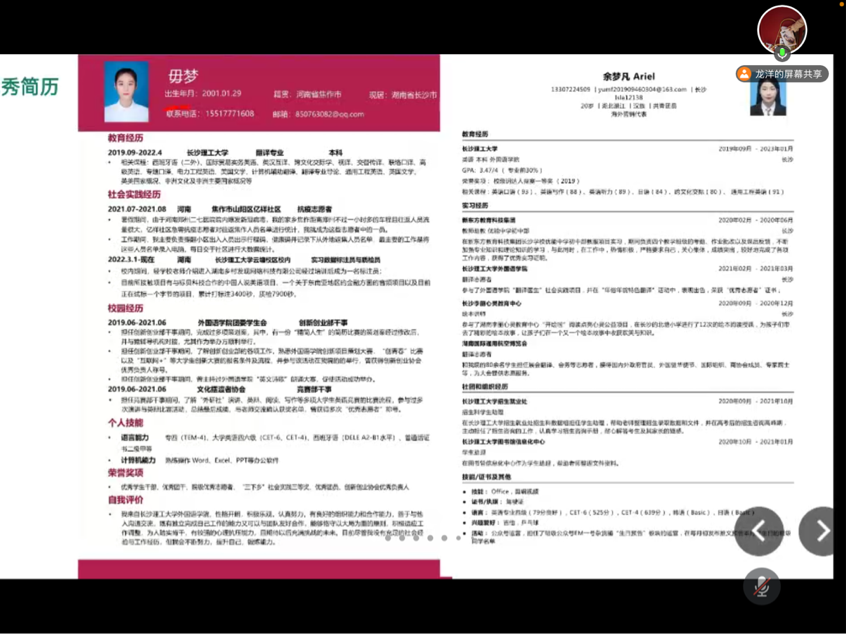 龙洋从就业信息搜索与管理的方法、求职相关事项、简历制作给学生进行了分享。她给学生分享了搜找就业信息的各类平台,也重点就“437必赢会员中心云就业平台”微信公众号的具体使用指南给学生进行了指导。她通过展示一些本年级学生的优秀简历,指导学生如何制作一份令面试官满意简历,如何捕获面试官的心。此外,她还重点分享了基层就业的形式与鼓励政策,并教授了一些面试的技巧及求职需要注意的细节。