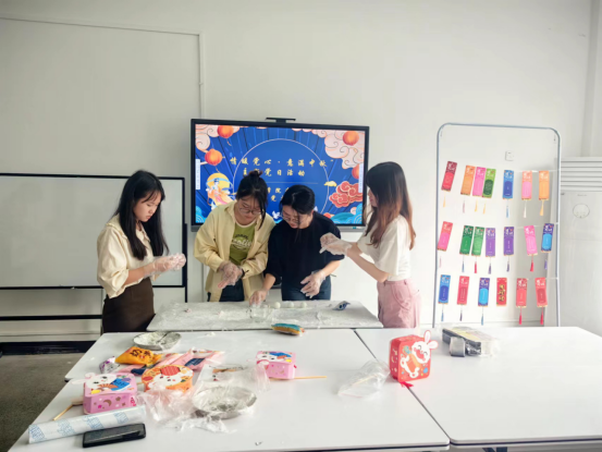 除了体验月饼制作,党员们还设置了花灯制作、猜灯谜等传统活动,让大家在体验和探索的过程中感受和传承中华民族优秀传统文化。在花灯DIY环节中,党员们个个化身能工巧匠,展现自己的手工技艺。看似简单的花灯,制作过程中需注意的细节可不少,每一处孔位,每一道折缝,每一根钉子都与花灯的成败紧密相连,稍有不慎,可能就会前功尽弃。大家专注忘我地投入到花灯的制作中,转眼间的工夫,一盏盏可爱俏皮的花灯便闪亮登场。在猜灯谜的环节,大家争相思考,大脑飞速运转,充分展示了自己的智慧和才华。氛围热烈,笑声不断,活动现场到处弥漫着浓浓的节日气息。