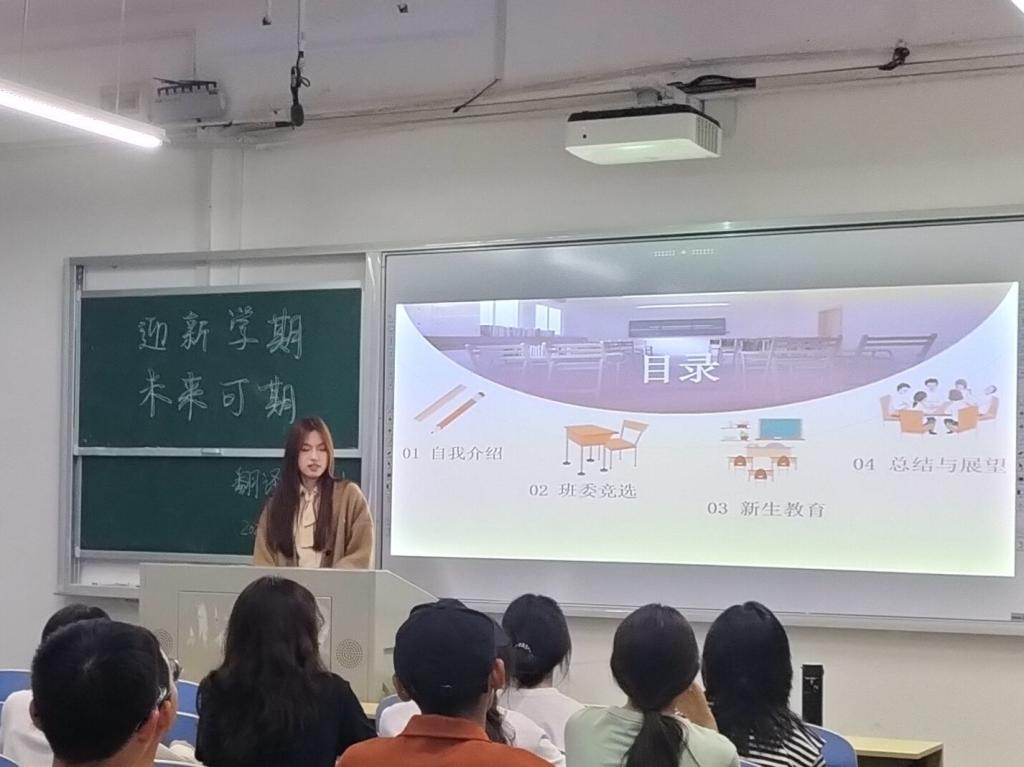 班会伊始,班主任老师们进行了更加详细的自我介绍,包括联系方式、求学与教学经历等等,给予了刚步入大学的同学们祝福及期望,帮助同学们了解大学生活的多样性,明确大学生活的意义和目的。同时,班主任对同学们进行了新生安全与纪律教育,强调了学生生命财产安全和心理健康,引导同学们及时正确地排解不良情绪,积极参加体育活动和社团活动,养成良好的卫生习惯、保持好寝室卫生,利用休息时间学习学生手册的相关规定等等。