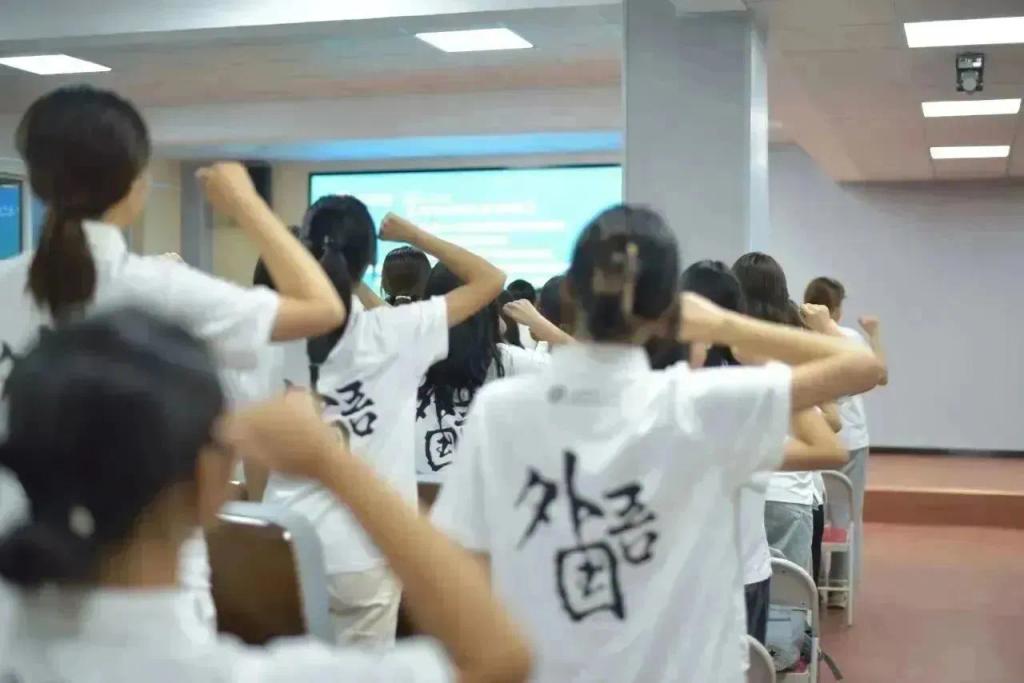 “我志愿成为一名光荣的文化摆渡者,坚定文化自信,自觉学习和弘扬中华优秀文化,不断增强跨文化理解能力和跨语言传播能力,秉持国际视野、家国情怀和志愿精神,讲好中国故事,助推中华文化走出去,为中华民族的伟大复兴贡献力量!”英语2302班霍姝漪带领全体师生宣誓,表露坚定成为一名文化摆渡者,为文化传播助力的决心。