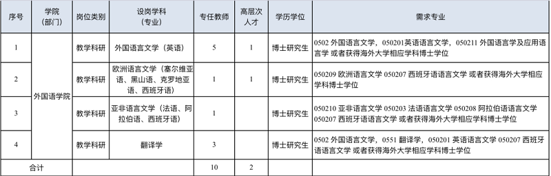 (1)专业:2022年招聘计划主要集中在外国语言文学(0502)和翻译学(0551)(具体信息详见下表)。