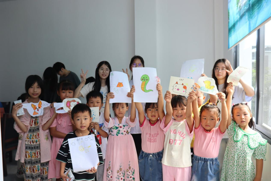 游戏环节,孩子们带上自己绘制的动物卡片围成小圈玩起“萝卜蹲”,在笑声中孩子们一遍遍重复着英语单词,理解记忆。“老师,明天我妹妹也想和你们一起玩捉迷藏。”课程结束后,一个腼腆的小女孩轻轻拍拍志愿者,小声地说出这一句。本次“环球课”体验,拓宽了山区孩子们的视野,激发起他们学习的兴趣。