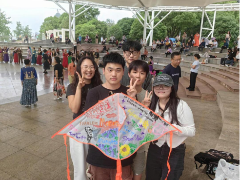 当天,100多名长理外语学子在湘江风光带风帆广场上分组自制风筝。创作过程中,广场上一片欢声笑语。他们或以母亲节为主题,或以期待的未来为主题,或以美好的夏日为主题,在风筝上写诗作画,大胆运用丰富色彩,巧妙构思,创作出了许多具有特色的风筝。
