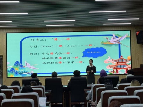 赛后,评委老师钟桂蓉和崔巍对选手们的精彩表现予以高度评价,并从语言表达、教学设计等方面提出全面且有针对性的建议,为选手们传授了宝贵教学经验,激励他们在国际汉语教育道路上不断探索。外国语学院党委副书记周芳表示:“汉语凭借独特魅力,吸引着世界各地的人们学习探索。为更好推广汉语、提升对外汉语教学质量,国际汉语教育人才的培养尤为重要!”