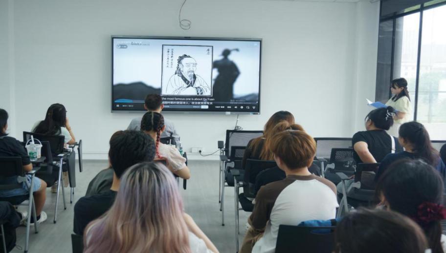 “The road ahead is long and arduous,I will seek persistently from dawn to dusk.(路漫漫其修远兮,吾将上下而求索)”现场,主持人刘飞凤和蔡凡以双语向留学生和外籍教师讲述了屈原的故事与端午节的文化起源,让中外青年一同感受《离骚》的深厚底蕴。