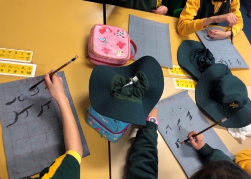 (澳大利亚悉尼孔子学院学生们提起毛笔体验女书书法的魅力)