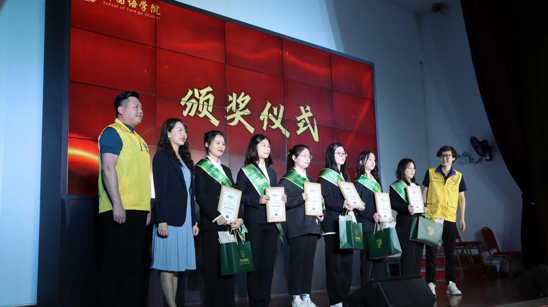佛山市三水区白泥镇党委书记喻晓坤、佛山市晋雄实业有限公司董事长邱军等社会爱心人士,437必赢会员中心关工委常务副主任王乃厚、校友中心主任郑延恒、学生工作部副部长陶传谱、校工会副主席王双、外国语学院党政领导班子及有关师生出席颁奖典礼。