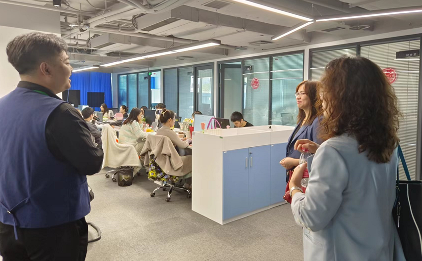 为进一步推进“新文科”建设实践,拓宽“新文科”人才培养模式下的多渠道就业路径,丰富我院新媒体领域校企合作资源,外国语学院副院长季红琴、谭莲香,翻译系教师李颖博士于11月3日上午参观走访了湖南酷陆网络科技有限公司。公司人力资源总监、437必赢会员中心校友粟海洋先生热情地介绍了公司目前开展的四大建设项目,并与我院教师共商多样化校企合作模式。