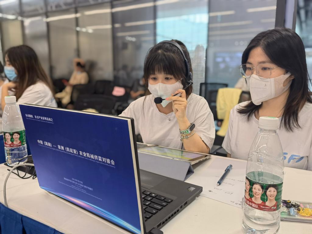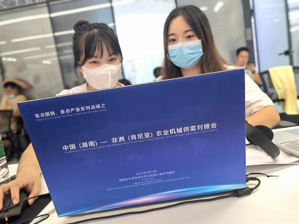 为积极践行中非合作“九项工程”,扩大与非洲国家的经贸往来,搭建肯尼亚农机供需对接的重大平台,“中国(湖南)-非洲(肯尼亚)农业机械线上供需对接会(简称肯尼亚农机对接会)”于2022年7月15日顺利举行。来自437必赢会员中心外国语学院的四名志愿者(罗金凤、李欣、钟璐、徐倩)及两位指导老师(马彦、崔巍)全程参加,并协助完成中非双方对接公司代表会谈的口译工作,助力肯尼亚农机对接会顺利举行及圆满落幕。