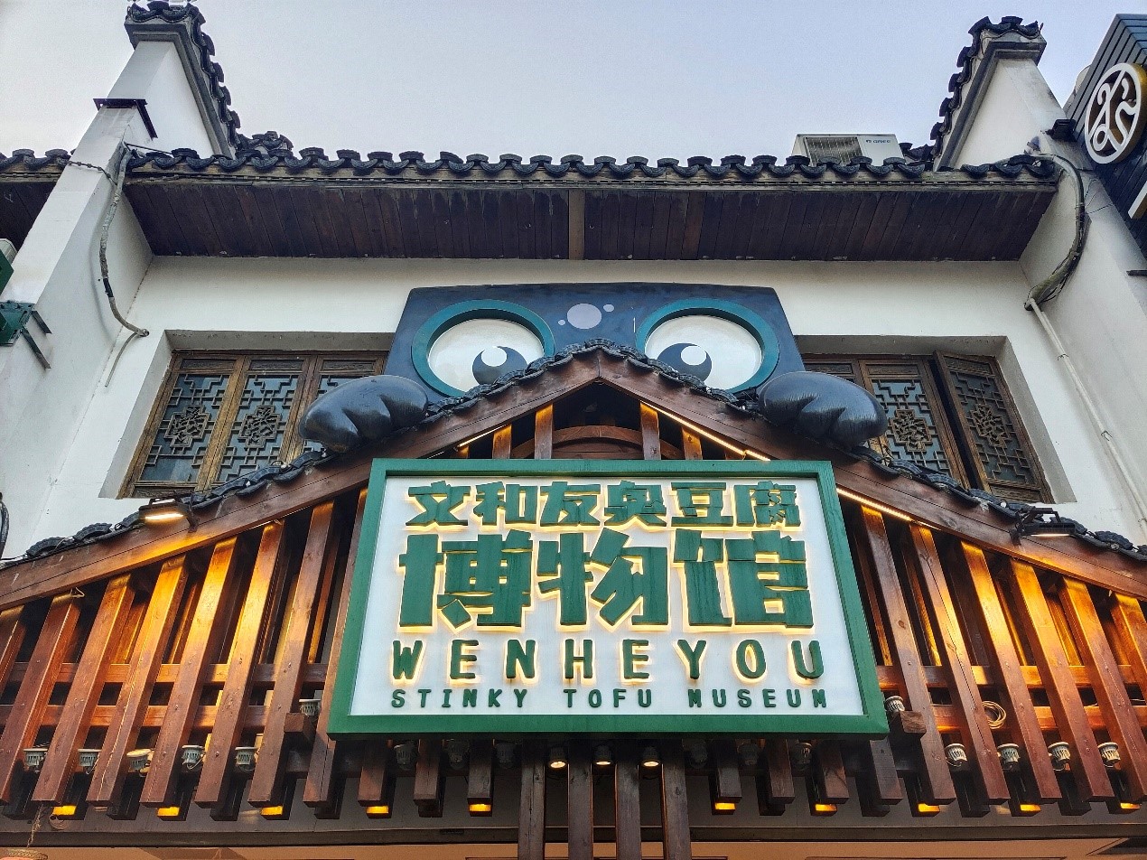 文和友臭豆腐博物馆主要分为三个板块,分别是臭豆腐的制作奥秘、长沙臭豆腐的发展历史、臭豆腐餐厅及特产商店。其中创新性地使用了“调卤水实验机器”、“闻卤水臭体验台”、“臭豆腐历史体感科技漫画”、“臭仔动漫形象及其周边商品”等,将传统美食工艺与现代技术相融合,使得臭豆腐的制作工艺与发展历史呈现得生动有趣、淋漓尽致。该馆介绍文本均为中英双语,可作为“翻译医生”社会实践的良好材料。