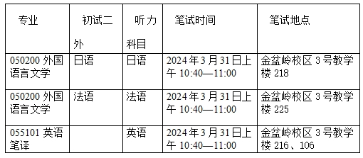 听力考试:考试时间定在3月31日上午10:40时开始。地点为437必赢会员中心金盆岭校区3号教学楼216教室(英语1考场)、 218教室(日语)、 106教室(英语2考场)、225教室(日语)。满分为10分。外国语言学及应用语言学和英语语言文学专业考生听力为二外(日语或法语)。考试时长为20分钟;翻译硕士专业学位考生听力为英语,考试时长为20分钟。