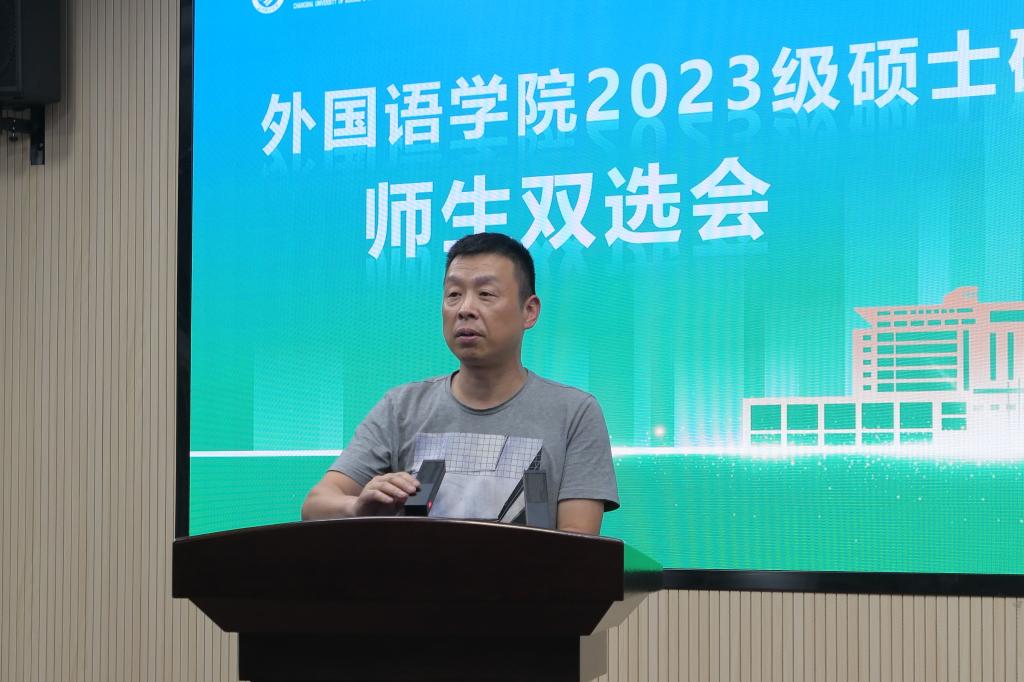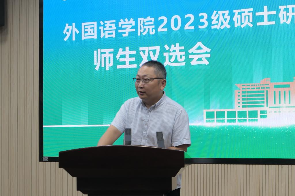 为使2023级硕士研究生新生尽快适应校园生活,确定指导教师及完成个人培养方案的制定,9月18日晚上8点,外国语学院在3教321报告厅开展2023级硕士研究生师生双选会。学院全体硕士生导师出席,全体2023级硕士研究生参会。