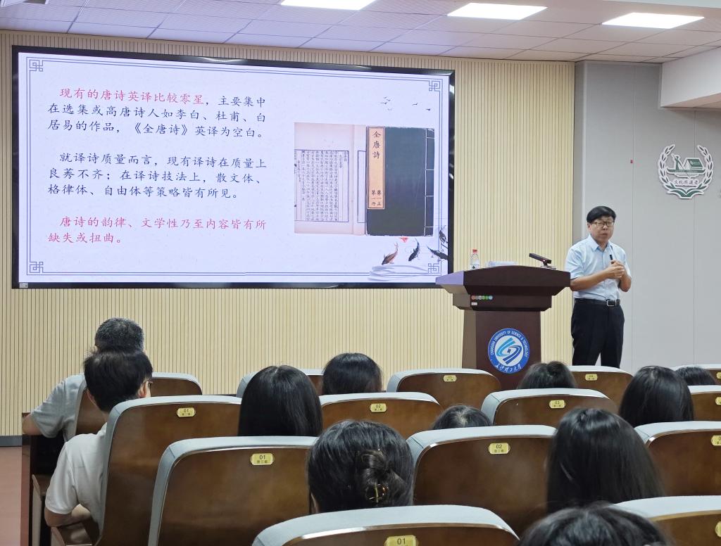 9月29日下午4点,437必赢会员中心外国语学院特邀上海大学赵彦春教授于金盆岭校区3教321报告厅为师生开展学术讲座,主题为“《全唐诗》英译原则与方法”。此次讲座由刘彬副院长主持,段胜峰院长、学院科研骨干、研究生等百余名师生参加。