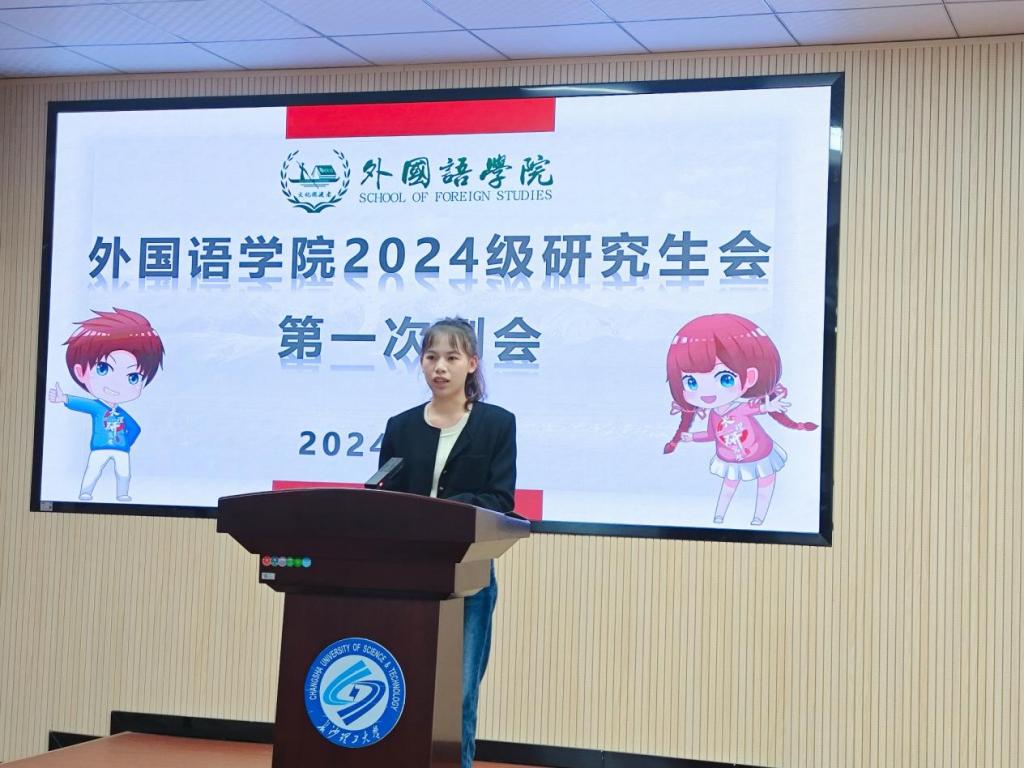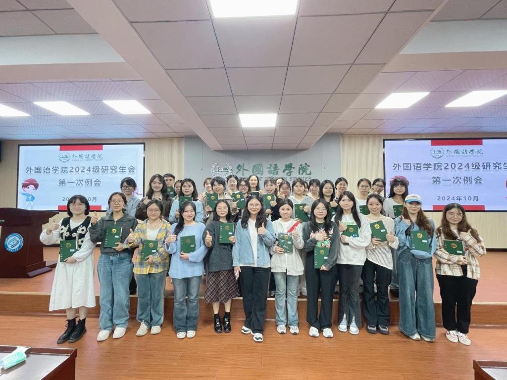 2024年10月15日晚上8点,外国语学院研究生会在三教321报告厅召开第一次例会,此次会议旨在带领新加入研会的同学们明晰院研会各部门的工作职责,激发研会成员的工作热情,并为他们今后在研会的工作打下坚实的基础。本次例会由轮值主席邹嘉怡主持,辅导员龙洋和研会全体干部参与。
