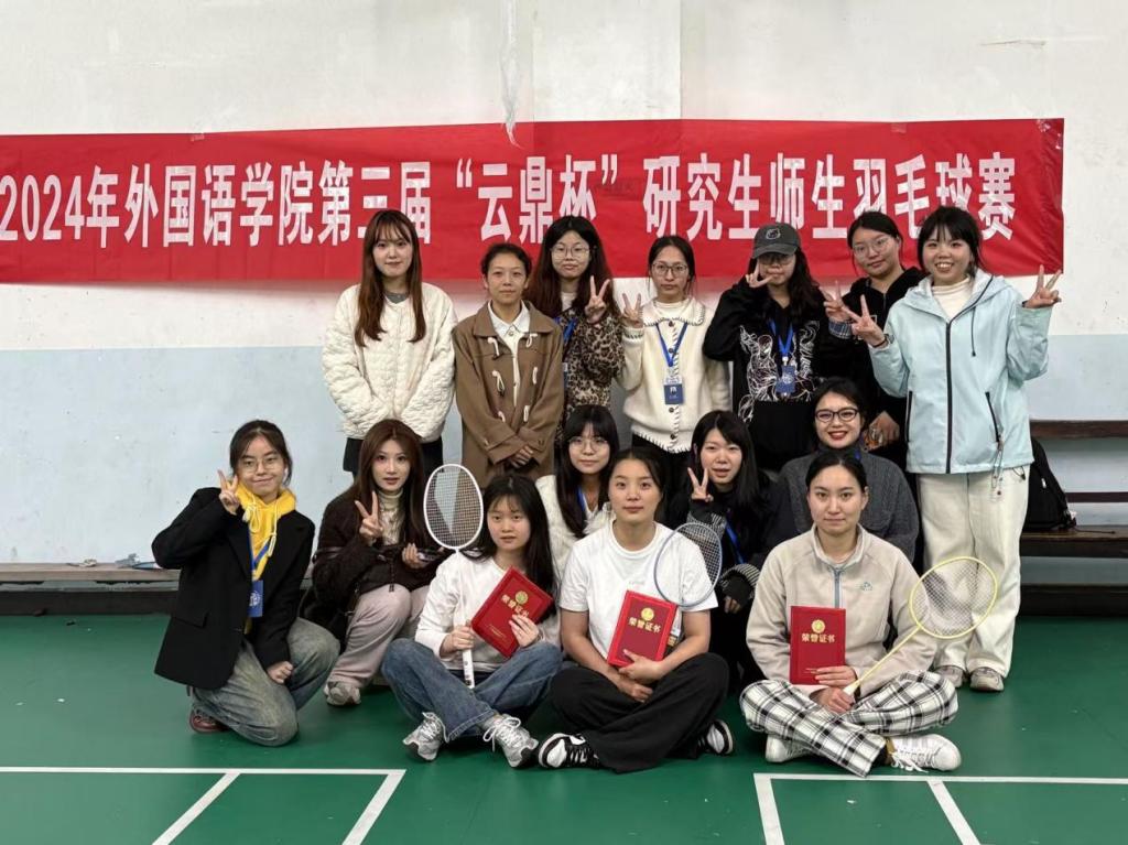 为贯彻全面发展的教育方针,丰富同学们的业余文化生活,促进外国语学院学生们身心健康发展,11月19日下午5:20,我院在体育馆羽毛球馆内举办了第三届“云鼎杯”研究生师生羽毛球赛外国语学院学生选拔赛。