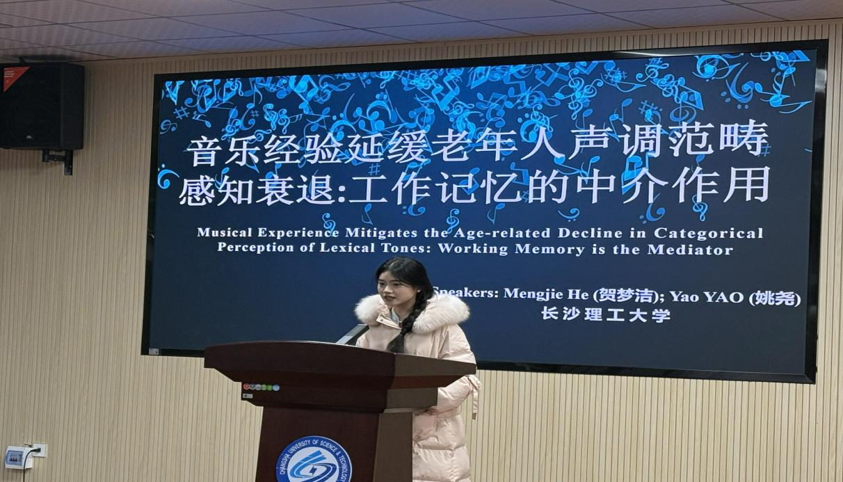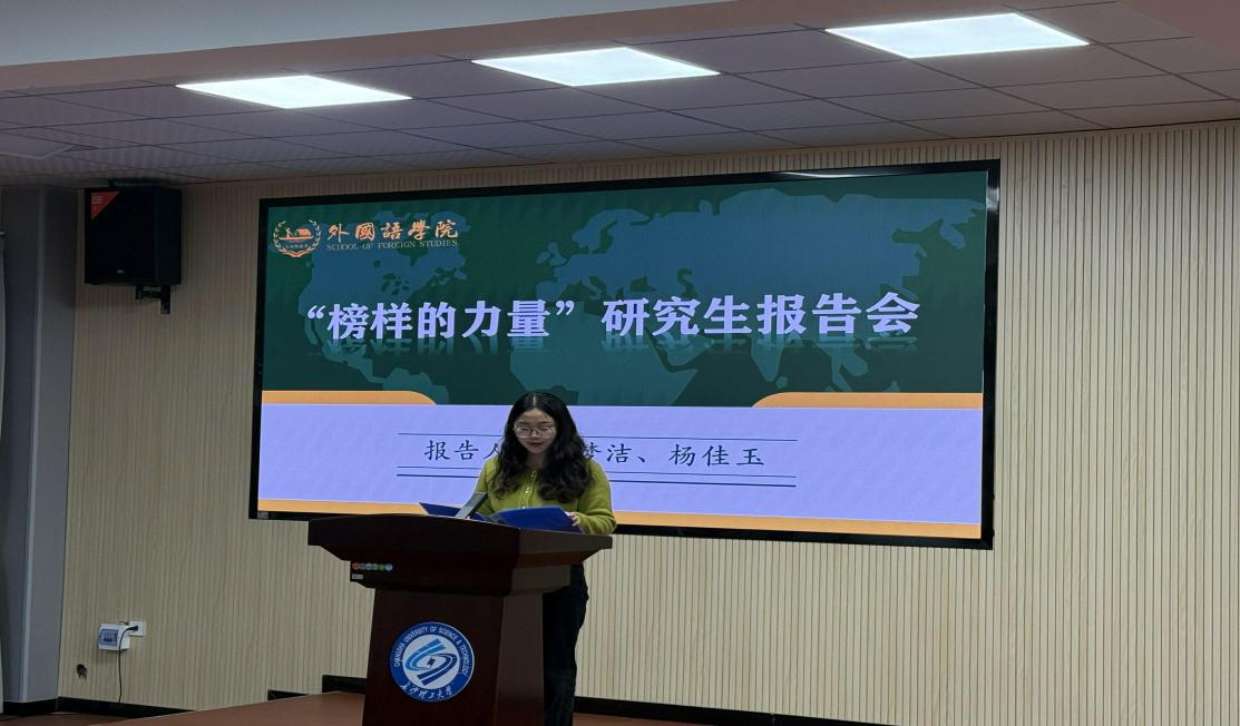 为促进学术交流,表彰科研突出的研究生,12月10日下午3点,我院于金盆岭校区3教321报告厅举行第二十届博力学术论坛“人工智能时代外国语言文学跨学科研究”专题论坛总结表彰仪式暨“榜样的力量”研究生报告会特邀两位本论坛特等奖获得者——2022硕士研究生贺梦洁和杨佳玉作论文分享报告。报告会由研究生辅导员龙洋主持,院党委书记文丽丽院长段胜峰副院长姚尧郑延国教授专业老师张志武、李颖、范洪铭、黄睿出席2023级及2024级全体研究生参会。