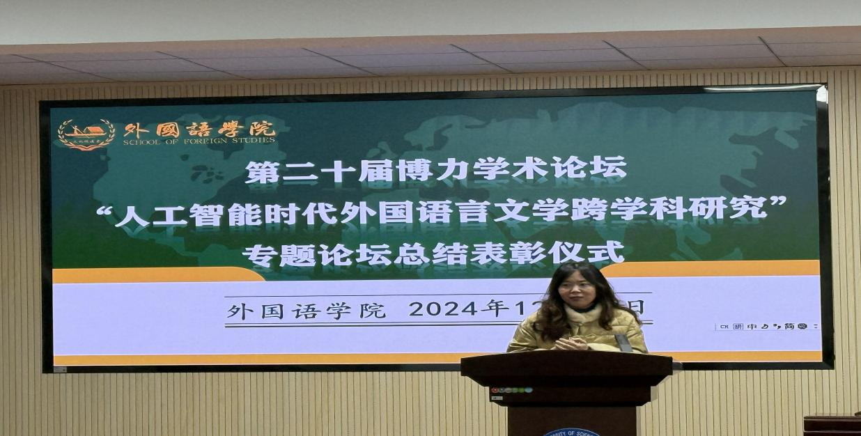 第二十届博力学术论坛“人工智能时代外国语言文学跨学科研究”专题论坛总结表彰仪式暨“榜样的力量”研究生报告会