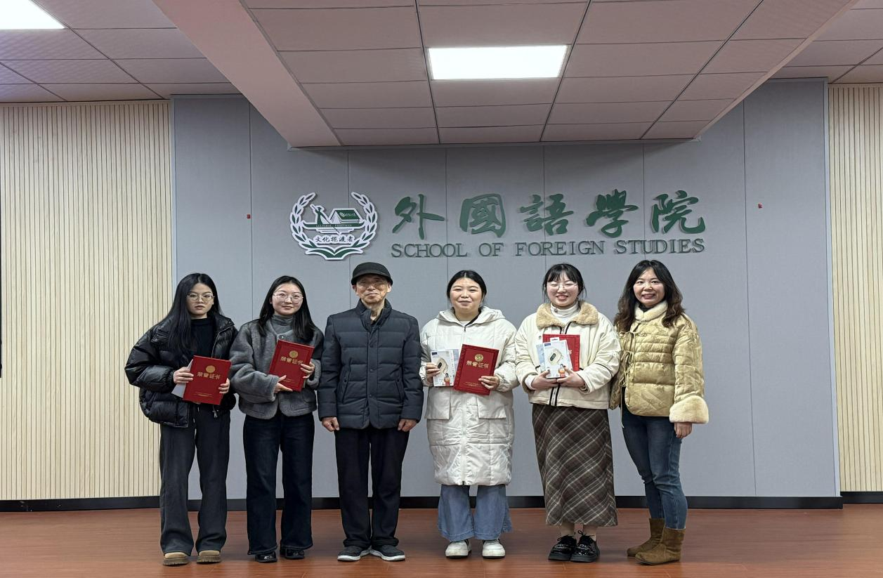 报告会伊始,贺梦洁上台讲解自己题为《音乐经验延缓老年人声调范畴感知衰退:工作记忆的中介作用》的论文,从音乐经验对老年人感知影响的角度展开,分享了论文研究背景和思路方法,同时也提出了该论文的不足以及未来的改进方向。随后,杨佳玉上台讲解自己题为《<孙子兵法>英语图像小说改编版兵学术语的意义生成研究》的论文,从图文详述关系对兵学术语的意义建构角度展开论文构思,为研究文化典籍提供了新颖的研究方法和思路。随着报告会逐渐接近尾声,8位与会嘉宾25位论文获奖者一一颁发证书并送上精美的礼品,表达他们对获奖者衷心祝贺和高度认可,激励所有学子继续在学术道路上追求卓越。最后,姚尧对“榜样的力量”研究生报告会进行总结发言。她表示,报告会的成功举办促进了学术发展,让外语专业不同方向外院学子分享研究成果与见解,我院研究生进行学术研究提供了参考和借鉴
