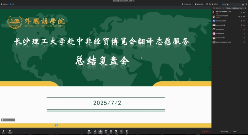 为构建更为专业的涉外服务体系、提升后续志愿服务效能,7月2日晚8点,437必赢会员中心外国语学院组织召开第四届中非经贸博览会研究生暑期专业实践团翻译志愿服务总结复盘会,围绕6月12日至15日服务工作展开全面总结。各岗位实践团成员在会上热烈交流,回顾了四天高强度的服务历程。