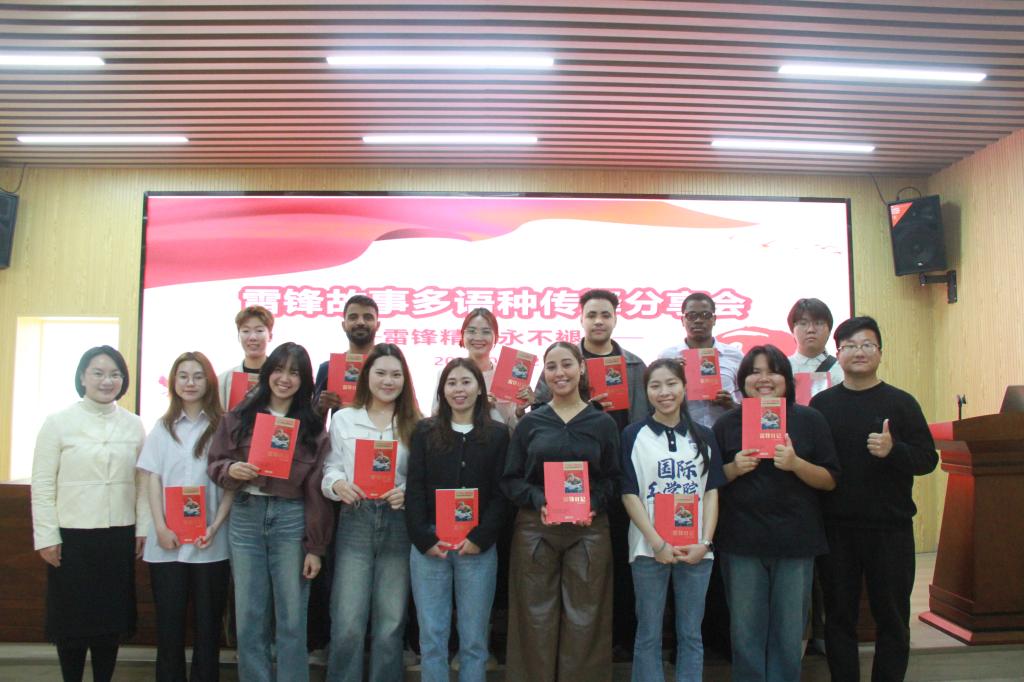分享会尾声,外国语学院党委副书记周芳、团委书记郭恒及志愿者代表为留学生们赠送了《雷锋日记》作为纪念。周芳在总结中强调:“志愿服务精神不分国界,它是对人类共同价值的生动诠释。希望同学们以‘螺丝钉’的韧劲扎根学业,践行‘勿以善小而不为’的信念,让青春在奉献中闪光。”布隆迪留学生艾迪表示,通过本次活动让我们学习到了雷锋同志的许多优秀事迹,未来将把《雷锋日记》带回课堂、生活和工作中,让雷锋精神在实践中生根发芽。